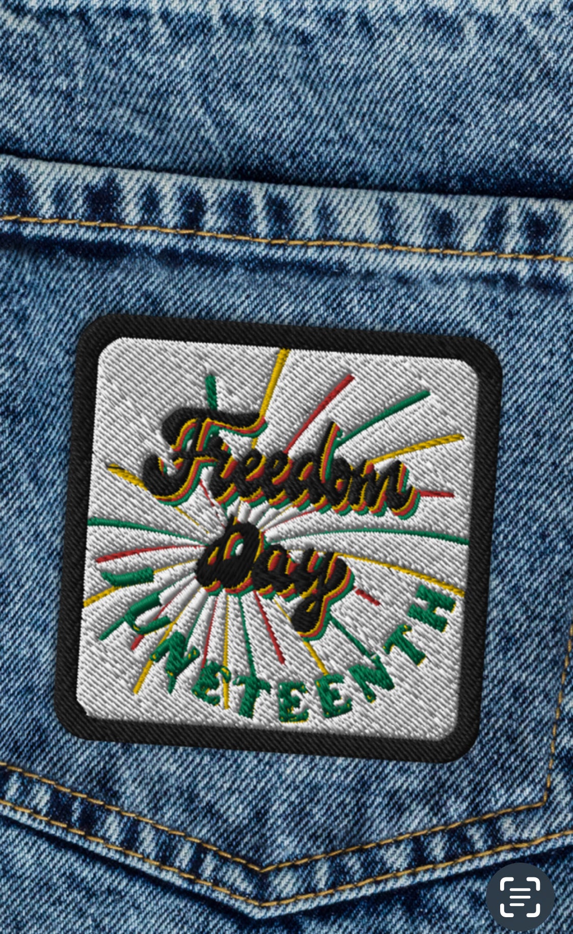 Add this eye-catching Juneteenth Freedom Day embroidered patch to any clothing or accessory.