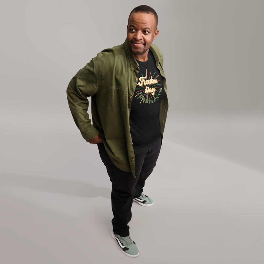 This Juneteenth celebration t-shirt is everything you've dreamed of and more. It feels soft and lightweight, with the right amount of stretch. It's comfortable and flattering for all.